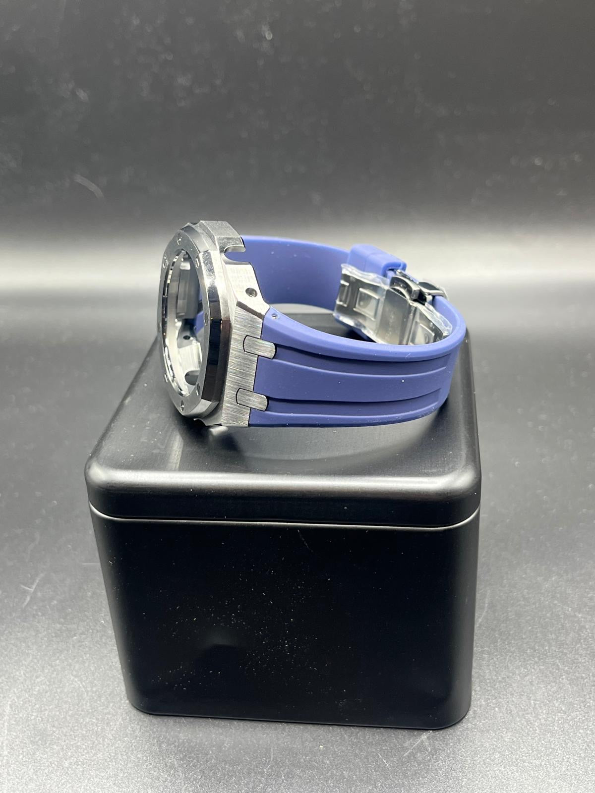 Enhance the look of your Casio G-Shock GA2100/2110 with this stunning Casioak Mod Kit Bracelet Case Bezel & Strap Conversion. The kit includes a stylish White wristwatch strap with a royal oak mod kit design made of stainless steel material in Silver, adding a touch of luxury to your watch.