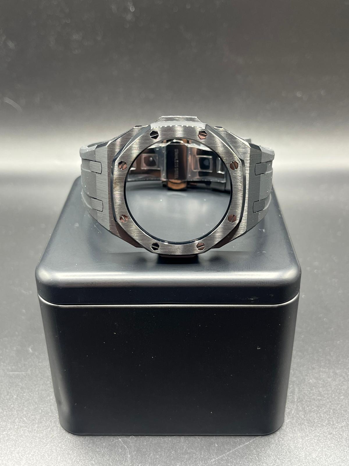 Enhance the look of your Casio G-Shock GA2100/2110 with this stunning Casioak Mod Kit Bracelet Case Bezel & Strap Conversion. The kit includes a stylish White wristwatch strap with a royal oak mod kit design made of stainless steel material in Silver, adding a touch of luxury to your watch.