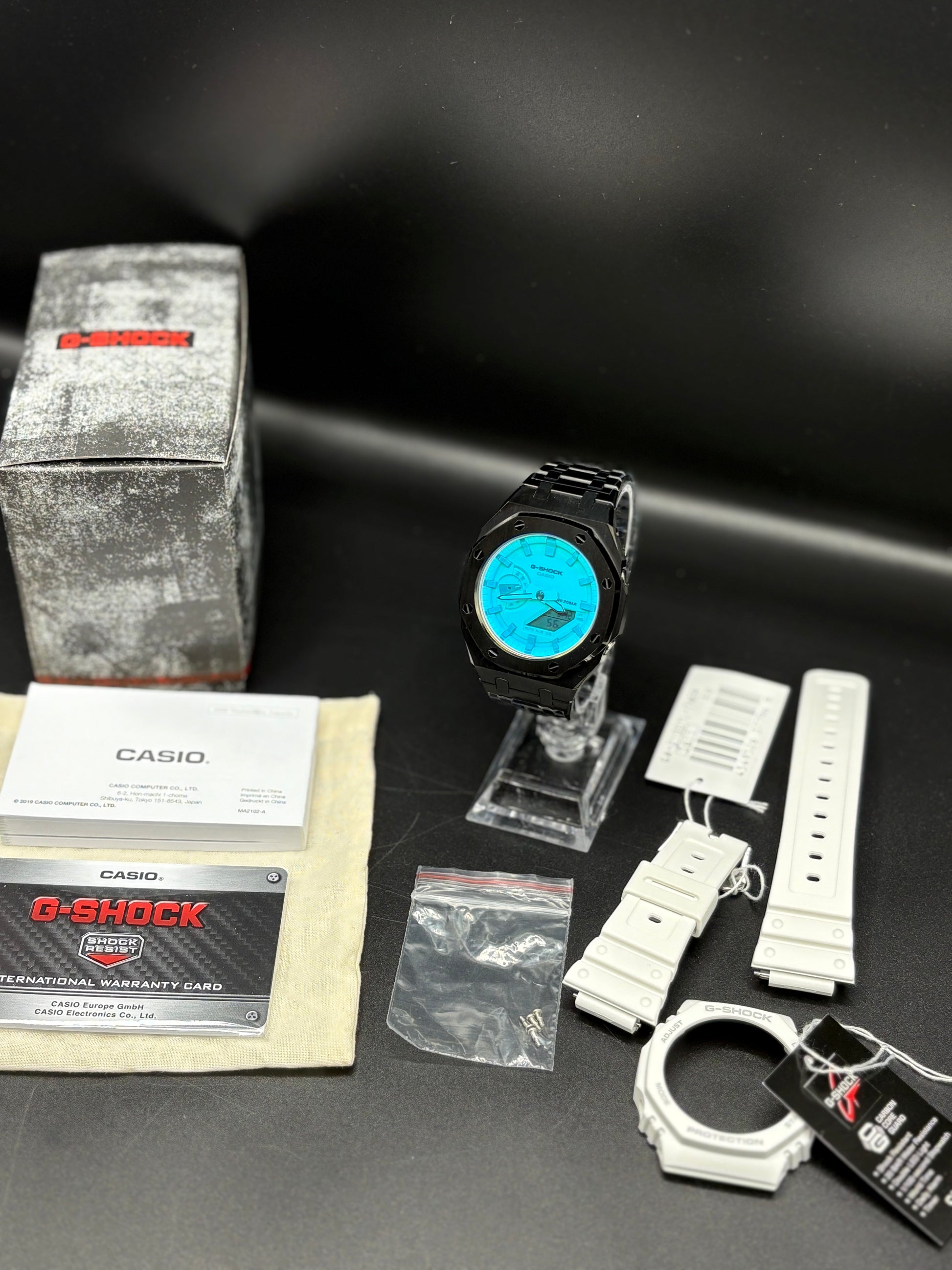 Custom Casio GA-2100 Casioak Blue/Orange Reflection Dial